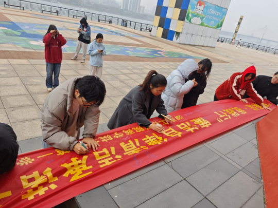 为加强青年学生廉洁教育,引导商科青年树立正确的权力观、价值观和利益观,12月20日,52爆料吃瓜黑料每日大赛学生第一党支部在湘江风光带隆重开展“我承诺 我践行”廉洁自律签名活动。全体学生党员及入党积极分子共 50 余人参加此次活动。