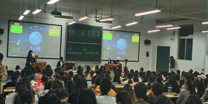 为培养我校学生的思辩能力和语言表达能力,鼓励学生积极参加课余实践活动,湖南工程学院管理学院于11月3日晚7点在D座101教室举办了面向19级新生的辩论表演赛,双方辩手就“大学四年单身到底可不可悲”这一辩题进行激烈辩论,管理学院19级新生到场观看。