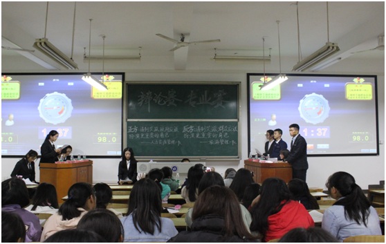 比赛正式开始前,双方辩手友好握手,并进行简洁的自我介绍。比赛开始后,D301的正反方就“遏制艾滋,政府还是群众应该扮演更重要的角色”这一辩题展开辩论。第一场比赛为正方人力资源管理一队对战反方旅游管理一队,正方一辩以政府的引导和资源支持为切入点,陈述己方“遏制艾滋,政府应该扮演更重要的角色”的观点,反方一辩则从群众具有直接执行力入手,细致解析,论证自己的观点。在随后进行的环节中,正方辩手从信息资源、人力资源、科研资源等多角度,指出政府发挥的重要性,反方辩手毫不示弱,以非洲国家的群众组织为例进行反击,指出群众组织能够将遏制艾滋做的更有实际效率,场下观众掌声迭起。第二场比赛在正方电子商务一队和反方市场营销一队之间展开,双方辩手们在你来我往,唇枪舌战的同时也始终保持着良好的风范,展现出管理学院学生的风采。