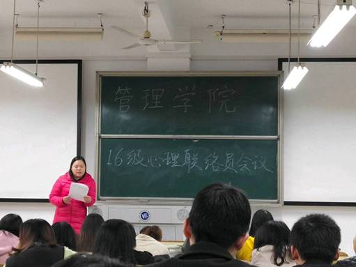 管理学院于2018年11月21日中午12:20在教学楼D203召开了“16级心理联络员会议”。此次会议由管理学院学生办公室单艳艳老师主讲,管理学院16级全体心理联络员到场参会。