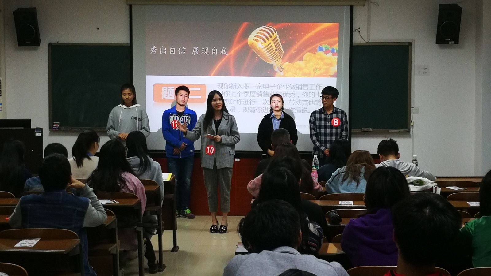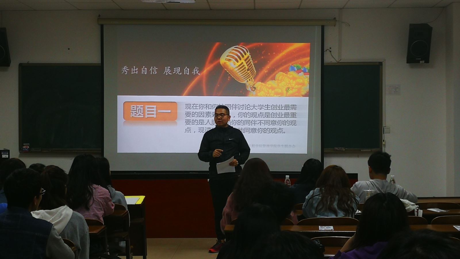 2018年4月24日晚19点,由湖南工程学院管理学院学生联合会主办、管理学院学生联合会实践部及就业指导部承办的“我是演说家”复赛在新校区G505教室正式拉开序幕。此次比赛旨在训练学生们的语言表达能力和逻辑思维能力,为日后步入社会打下坚实的基础。