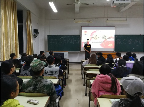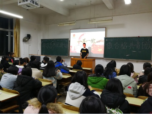 团课内容开始是由管理学院学生会组织部部长吕豪向同学们介绍中国共产主义青年团性质,历史及职能,并认真学习认识团旗,团徽和团歌。当同学们了解到共青团的光辉历史的时候,能够感受到同学们作为团组织的一部分的骄傲。之后同学们了解到了“一学一做”的内容,即学习习近平总书记讲话,做合格共青团员。接着由管理学院团支部副书记杨桂英带领大家学习习近平总书记十九大重要讲话精神,并且让同学们分享了自己作为团员的优秀事迹。随后同学们达成一致:学是前提、是基础。做是着力点、落脚点。自觉践行党的理论和路线方针政策,自觉践行社会主义核心价值观,在青年中发挥模范带头作用,在经济社会发展各项急难险重任务中当好生力军和突击队。
