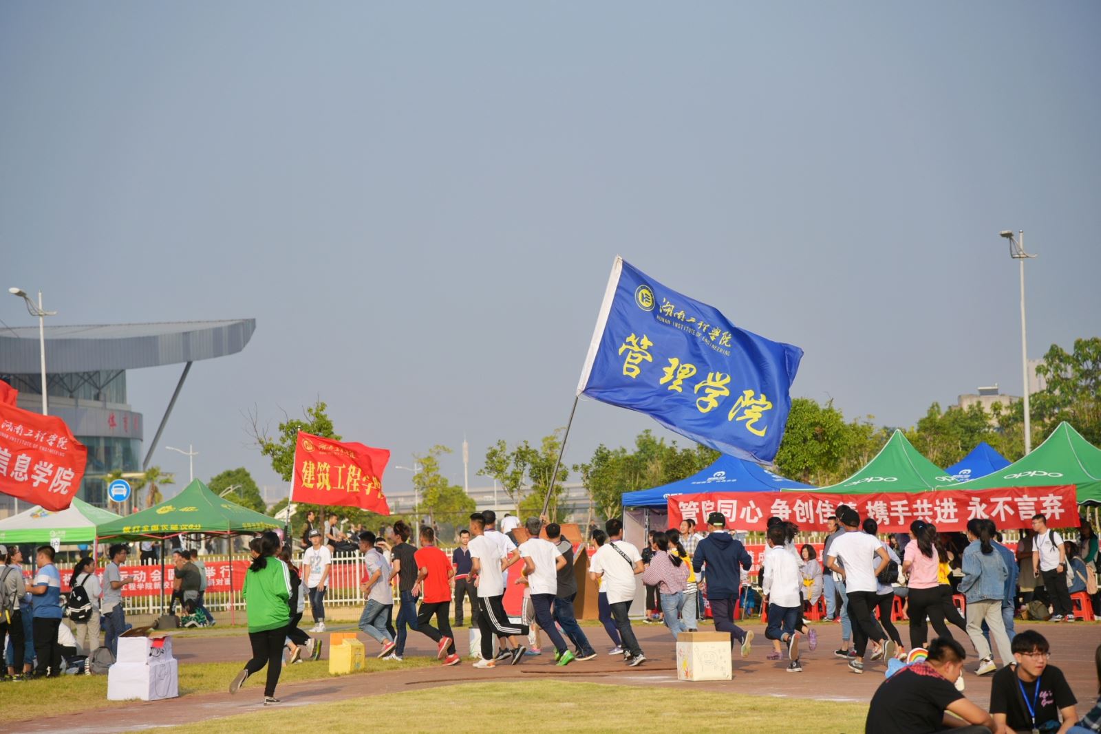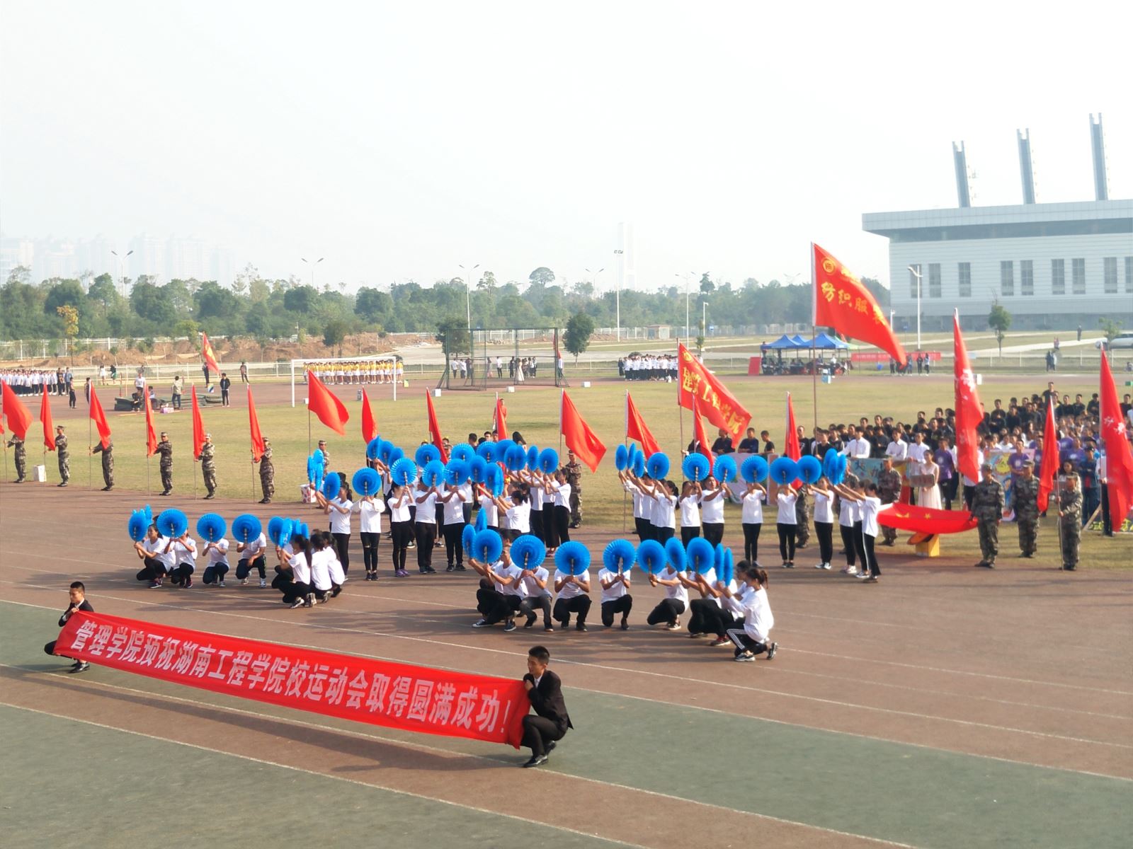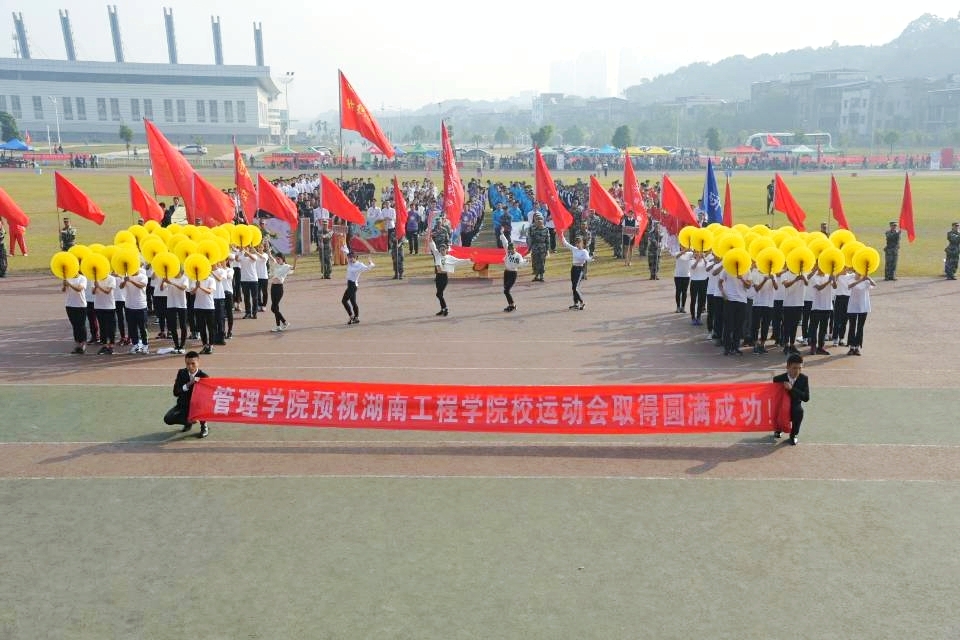 10月27日,湖南工程学院秋季运动会如期开展,开幕式上,管理学院方阵,步伐矫健,整齐干练,舞蹈部分也十分醒目,很好的诠释“管理英才,继往开来;管院雄风,谁与争锋”的口号!秋风飒爽,骄阳高挂,运动们热情洋溢,大家都积极担当“拉拉队”,加油助威声此起彼伏。