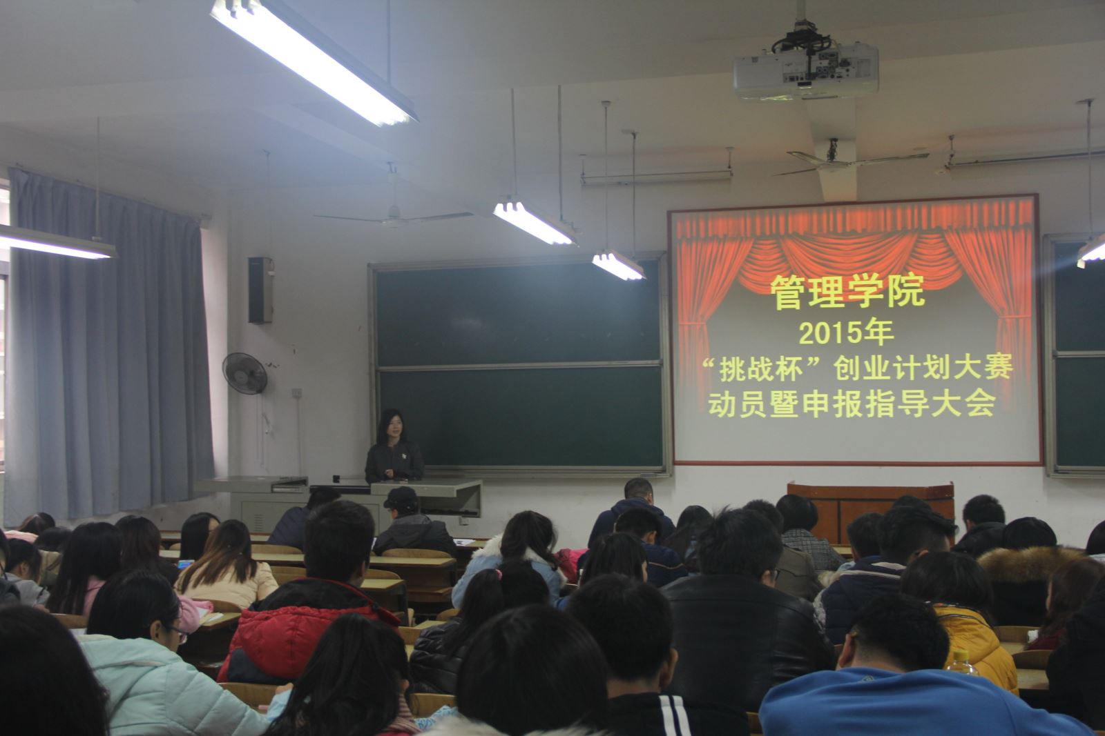 为了进一步提高管理学院学生的科学研究水平和成果转化能力,培养一批具有创新意识、实践能力和创业精神的创新人才,激发大学生创业意识和自主创业的热情,2015年12月1日下午,管理学院在新校区D栋201举办“第六届‘挑战杯’创业计划大赛动员暨申报指导”大会,学院党总支书记卢明纯出席会议,党总支副书记钱祖煜主持会议,学办主任罗荃、团总支书记宋志航、学生会干部、SIYB学员、及部分项目团队成员参加会议。