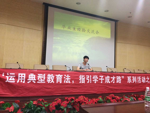 之后,由考取邵阳市邵东县国税局的汤懿分享他考公务员的经历,他是这样说的:“结合自身情况,觉得考取公务员的希望比较大,所以自己就毅然决然地踏上了考取公务员的征程。”汤懿向大家介绍如何准备行测和申论的复习,“行测部分就是要多做题,而申论就需要平时多积累,反复练习,积累经验,掌握技巧。”汤懿还提醒大家:“考研是通往成功的道路,但成功的道路却并非这一条,大家也可以多尝试考取公务员和一些事业单位编制,这些机会也很多,“条条大路通罗马”。
