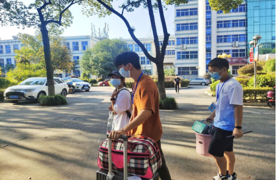 门口的工作者在岗位上尽职尽责,新来的同学也积极配合相关工作。由于疫情的原因,陪同的家长不能进入学校,望着自己满是行李的孩子在志愿者的帮助下进行报道,他们也多了一份安心。坚守在工作棚下的学生工作者们,耐心的回答新生的问题,即便工作非常忙碌,也尽心地引导他们完成报道工作。身负杂重行李的新生,在志愿者的帮助下,减少的不仅仅是身体上的负担,更是减少了第一次一个人进入大学的茫然与无措,感受到了管理学院大家庭的温暖。