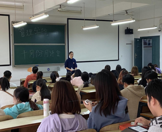 10月26日,湖南工程学院管理学院召开了本学期第四次月讲评会议。大一学生在南校区三教303、304教室,大二、大三双数学号学生和大四各班班长、团支书在主校区D101教室分别参与会议讲评。本次月讲评会议由学办辅导员谭超、罗蒙、周艺、黎博、陈祎婷、包海燕、陈景楠对工商管理、旅游管理、人力资源管理、物流管理、市场营销、电子商务、会计学、大数据管理与应用八个专业进行讲评。