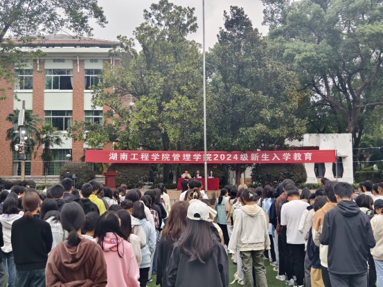 10月8日下午,管理学院于湖南工程学院南校区操场成功举办2024级新生入学教育,旨在助力新生迅速融入大学生活,确立清晰的学习目标,为未来成长奠定基石。活动由党委副书记谭超主持,出席嘉宾包括管理学院院长徐运保、副院长张维梅,以及教师代表、全体辅导员、优秀在校学生代表和全体2024级新生。