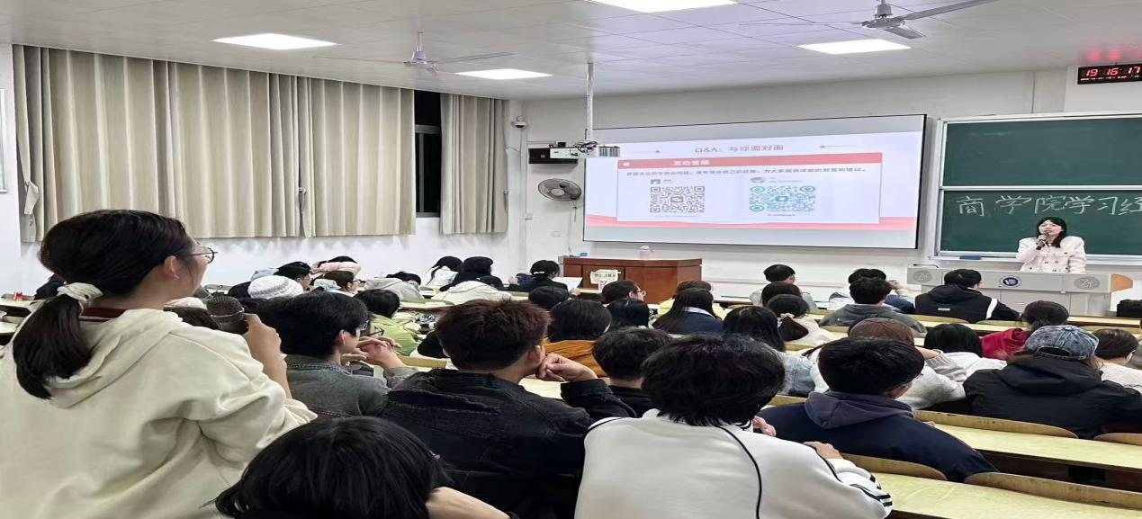 书院路的分享会采用了“走进晚自习教室”的形式,进行了更具针对性的交流。不仅讲解了校区间优质学习资源的获取途径,还详细说明了如何高效参与主校区的各类活动。此外,分享内容根据不同专业和年级的特点,提供了分层分类的学业规划建议,有效解答了新生关于跨校区学习生活的具体困惑。