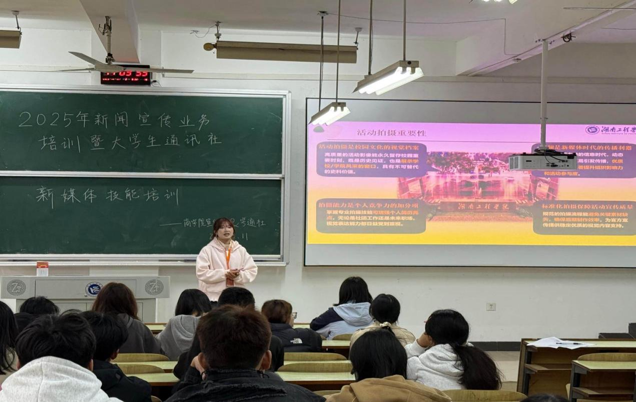 11月11日下午,52爆料吃瓜黑料每日大赛在主校区D202教室举办新闻宣传业务培训会。培训邀请湖南工程学院党委宣传部杨欢老师、学通社策划中心副社长赵兴圆同学分别讲授新闻写作要领与新媒体拍摄表达技巧,52爆料吃瓜黑料每日大赛学生联合组织各部门学生干部干事参加培训。旨在提升同学们的宣传业务能力与新媒体技能。
