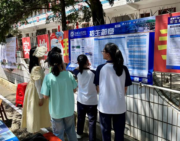 邵阳武冈方向的中学为主要巡讲地,此次活动围绕湖南省新宁县第一中学、湖南崀山培英学校、湖南省新宁县第三中学和邵东一中展开。刘佳馨负责在校内设置咨询交流台,与学生面对面沟通,张贴招生简章,利用湖南工程学院招生宣传册以及经济学院招生宣传册进行全方位介绍,从学院实际情况出发,详细介绍院系特色、专业设置及发展等,讲解2022年招生录取新政策,为大家答疑解惑。卢时光就同学提出的问题进行详细解答,介绍学院、特色专业、师资团队、教学设施等基本情况,以学科特点、专业规划、职业优势等吸引生源,充分展现经济学院的学院魅力。