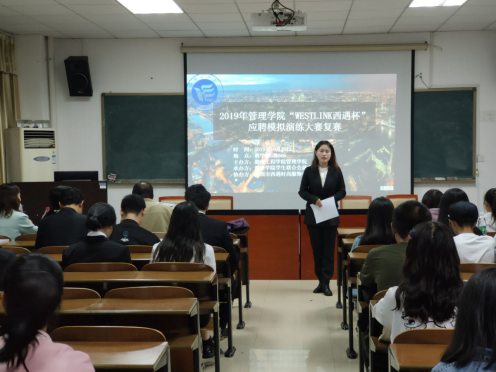 2019年10月22日晚7点,由湖南工程学院管理学院主办,管理学院学生联合会就业服务部承办,深圳市西遇时尚服饰有限公司协办的“管理学院2019年“WESTLINK西遇杯”应聘模拟演练大赛”复赛在教学楼G505如期举行。
