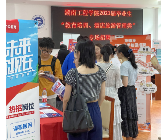 5月14日下午14:00至17:00,长沙美楠电子商务有限公司、湖南腾思教育发展有限公司、普瑞酒店有限责任公司、湖南云学贝教育科技有限公司等40家企业在我校新校区图书馆122、123会议室举办了针对2021届毕业生“教育培训、酒店旅游管理类”专场招聘宣讲会。这次招聘会为我院应届毕业生提供了一个良好的就业信息交流平台,也让我院的大一、大二的学生对招聘会有了切身休验,有利于他们明确方向、找准目标。