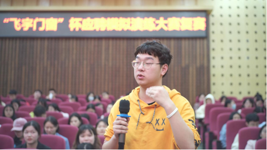 本次大赛在激烈的掌声中正式开始,从初赛中脱颖而出的二十位选手带着对职场的憧憬和挑战,站在讲台上慷慨激昂、尽显书华,与在场观众分享他们的求职技巧。参赛选手从性格爱好、竞争优势、荣誉与经历等方面进行自我介绍,并机智地回答了评委提出的尖锐问题。比赛过程中选手们用条理清晰的解说,慷慨激昂的声音,落落大方的气质,把比赛现场一次又一次的带往高潮,观众的一次次掌声也是对求职者成功最好的回答。比赛中主持人、评委、观众和参赛者之间的互动也十分精彩,有欢笑也有深思。互动环节的巧妙设计也为此次复赛增添了更多色彩。