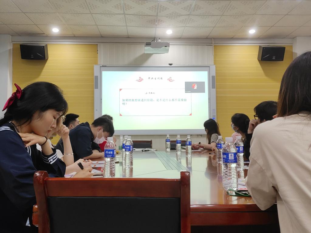 征兵讲座结束后,包海燕老师开始对就业毕业工作作出指示,她首先研判疫情影响,分析就业形势,并依据自身工作经验为基础,分享了自己就业方面的感悟并提供了许多切实的建议,同时引导学生主动适应当前就业形势变化,积极转变就业观念,多多把握面试机会,不断积累求职经验,尽早实现求职目标。随后,包海燕老师根据前期精准摸排,有针对性的为学生讲解相关毕业工作的要求,对学生提出的报到证、人事档案转接等问题进行一一解答。同时耐心地为同学们解答其它就业相关问题。在这之后,包海燕老师召开毕业班班长座谈会,多方面多角度地对毕业工作做出指示,包括毕业照、毕业就业材料的收集、毕业派遣、毕业安全事宜、毕业返校、贷款毕业生等相关问题。此轮交流会共持续了近两个小时,与会毕业生反响热烈,积极互动,提问有序。大家纷纷表示,将会牢记老师们的话语,在疫情期间做到“不放过一处信息点”,同时保持积极向上的求学精神,勇于创新。