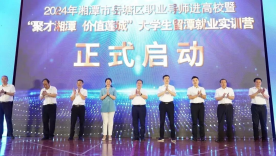 5月29日,2024年湘潭市岳塘区职业导师进高校暨“聚才湘潭 价值莲城”大学生留潭就业实训营启动仪式在湖南工程学院举行,湖南省就业服务中心党委书记、主任陈荣鑫宣布活动正式启动。湖南工程学院党委委员、副校长张小刚,岳塘区委副书记、区人民政府区长周赏玲出席并致辞。湖南省就业服务中心综合部部长李乾坤,湘潭市人力资源和社会保障局党组成员、副局长李伟,湘潭市就业服务中心主任成建良出席仪式。