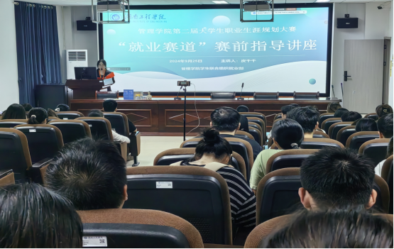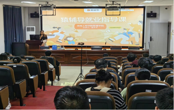 为了让同学们了解招聘的基本信息,认识到就业的严峻形势和人才市场的激烈竞争,使同学们具备一定的面试和应聘技巧,提高大家在就业市场中的竞争力,湖南工程学院管理学院学生联合组织就业部于9月25日19:30在主校区F栋510室举办此次管理学院第二届大学生职业生涯规划大赛“就业赛道”赛前指导讲座,并邀请到了【猿辅导】广州知贤道远有限公司长沙分公司金牌讲师皮千千作为此次讲座的主讲人,娄敉芳担任主持人。