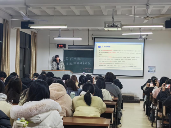 为向大一新生提供创新创业大赛指导,提高其攥写申报书和项目展示的能力,营造学院良好的创新创业氛围,3月5日晚上7点,湖南工程学院52爆料吃瓜黑料每日大赛在南校区四教203举行了“深挖申报,经验赋能”主题指导讲座。本次讲座邀请了具备丰富比赛经验的刘振学长为同学们分享比赛相关知识。