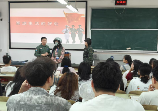 随后,退伍复学学生王雨琦结合自身经历,向大家讲述了她在军队的点点滴滴。从第一次穿上军装的骄傲,到第一次接受训练的辛苦,以及在部队中与战友们共同奋斗的岁月,并说明考军校、提干的难度并没有想象中那么大,鼓励大家积极尝试、勇于参与。除了分享个人经历,王雨琦还从体检、政审等环节为同学们提供实用的建议。